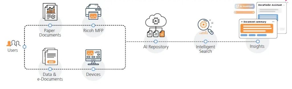 理光InnoAI 計劃合作夥伴Pickso開發的「Docufinder」已於七月在AI Marketplace平台上推出。該方案專為企業,尤其中小企設計,能以AI高速分類大量文件、設立部門權限,並提供智能洞察 (AI Insight),大幅提升文件管理及部門協作效率。
