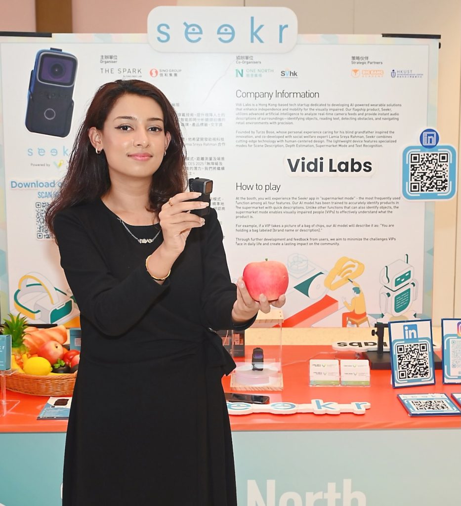 今次參與展出的科技產品涵蓋不同服務範疇,包括樂齡科技如Vidi Labs研發的Seekr AI穿戴裝置、音科思 (Incus Company Limited) 提供的聽力測試,以及運用Panoptic AI面部掃描系統進行健康檢查;小朋友通過Big Bang Academy的STEAM親子工作坊,製作發電機和迷你火箭,啟發他們對創科和科學的興趣;還有近百位北區小學生參與了香港社會創投基金舉行的「未來天地 北都社創營」專題學習課程。