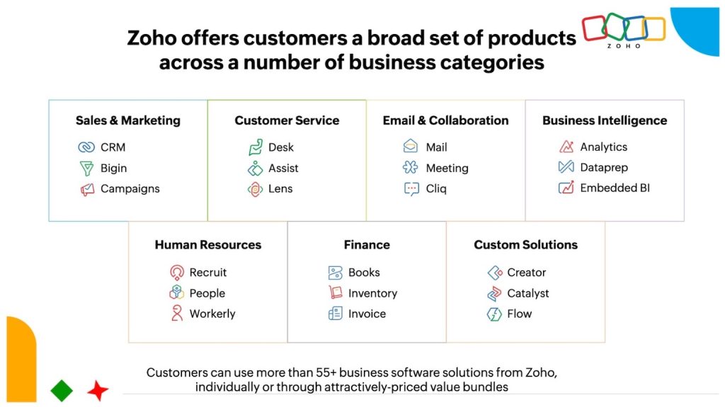 經多年發展,Zoho現已推出55種商業應用,並將一切功能與資料連繫一起。