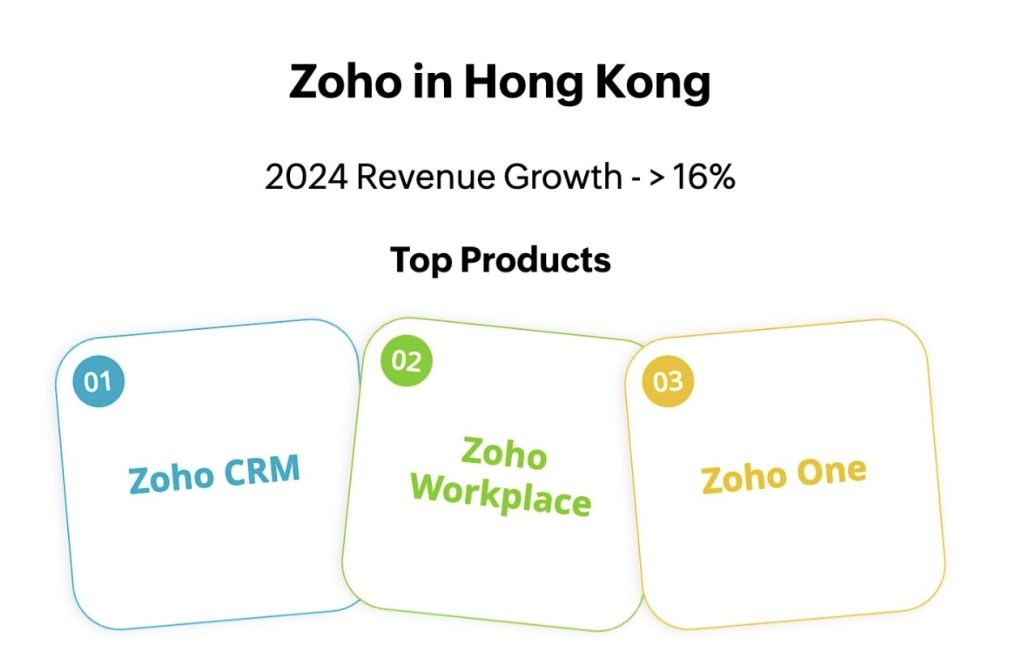 2024年Zoho在香港錄得收入增長16%,反映香港市場對Zoho產品的採用率持續提升。