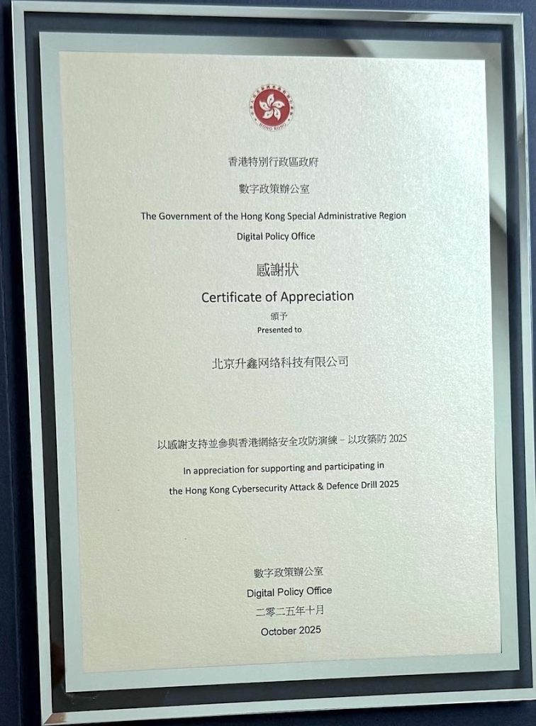 由香港特區政府數字政策辦公室主辦、香港警務處網絡安全及科技罪案調查科 (網罪科)、香港互聯網註冊管理有限公司 (HKIRC)、數碼港及職業訓練局 (VTC) 協辦的 「香港網路安全攻防演練 – 以攻築防2025」,經過三日兩夜的紅藍對抗,在2025年10月12日晚完成。青藤雲安全作為這次演練的紅隊成員及藍隊技術顧問,憑藉在攻防兩端的卓越表現,榮獲數字政策辦公室頒發感謝狀,表彰其在提升本地網路防禦水平方面的突出貢獻。