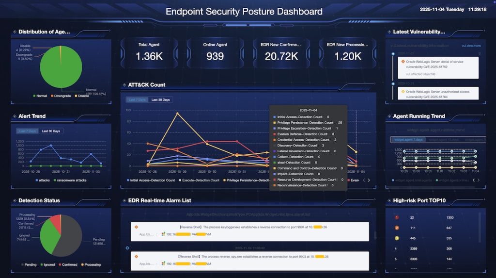 面對新型高級攻擊,企業需要的不是「被動攔截」,而是「主動防禦」。青藤深睿 – 終端安全管理系統憑藉深度威脅檢測與多維響應能力,涵蓋終端資產風險檢測、安全研判、威脅分析、事件溯源、響應處置全流程,可為企業提供真正可應對新型高級攻擊威脅的一站式終端安全閉環解決方案。