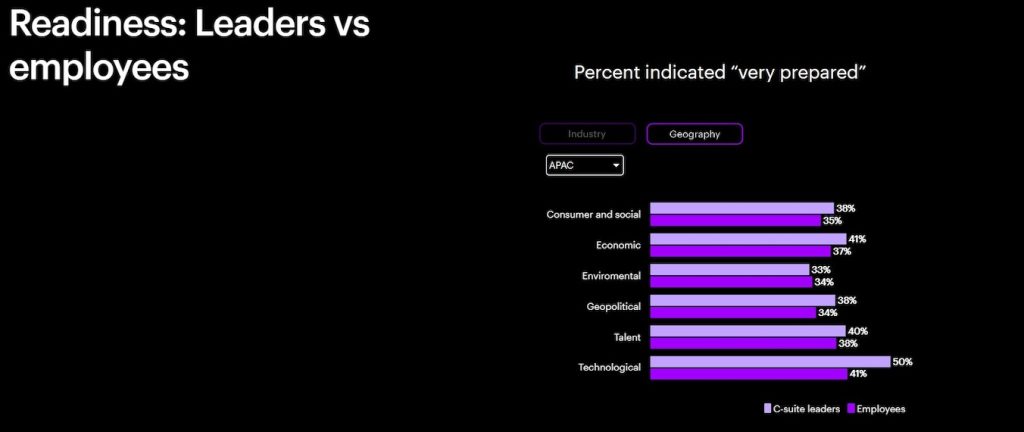 研究發現,有更多的 (94%) 受訪中國企業管理層表示,他們所經歷的變化自年初以來加速且加劇,與1月份 (62%) 相比,該比例顯著上升。面對各種變化,企業管理層和員工都感受到準備不足。