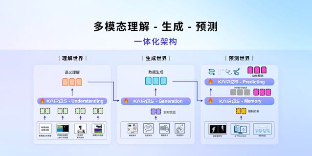 ◆開悟世界模型3.0:首個「多模態理解—生成—預測」的世界模型,融合物理規律、人類行為和真機動作,除了深度理解真實世界的物理規律與人類行為的底層邏輯,更能生成長時動態交互場景視頻,預測萬千演化路徑等特性,爲具身智能提供高像真度及可廣泛應用的虛擬訓練環境,同時與全產業夥伴共同構建空間智能創新生態,重塑全球技術競爭格局。