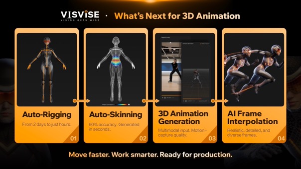 VISVISE今年早前在gamescom 2025首度公開亮相,憑藉其針對動畫製作中最耗時的前期準備環節進行優化的自動化技術而備受矚目。來到全球最大、最具影響力的電腦圖學會議之一 SIGGRAPH ASIA 2025,VISVISE更進一步將技術演化為覆蓋整個3D角色動畫製作全流程的AI 解決方案,清晰展現其技術邁向新里程碑。