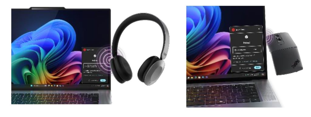 - ThinkPad雙模式無線ANC接疊式耳機8550:這款時尚輕巧的耳機獲Microsoft Teams認證,並具備Bose音效技術,提供自適應混合式主動降噪 (ANC) 和基於AI的環境降噪功能,確保通話清晰,並提供長達58小時的播放時間⁹。