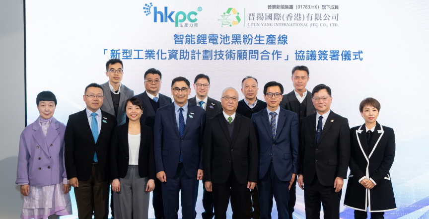 香港生產力促進局 (生產力局) 成為晋揚國際 (香港) 有限公司 (晋揚國際) 「新型工業資助計劃」(資助計劃) 項目技術顧問,建設全自動鋰電池黑粉生產線,提供全方位智能製造技術評估及建議。雙方於生產力大樓舉行簽約儀式,共同推動香港電池回收產業和新型工業化的發展,同時也將是香港新能源和綠色轉型發展的新里程碑。