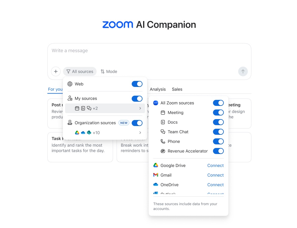 - Zoom Revenue Accelerator 功能升級:全新 AI Sales Assist 可在通話過程中即時提供銷售提示、競爭洞察及建議後續行動;Ask ZRA 則透過對話式智能分析,讓業務主管可透過日常語言深入分析通話及交易數據。